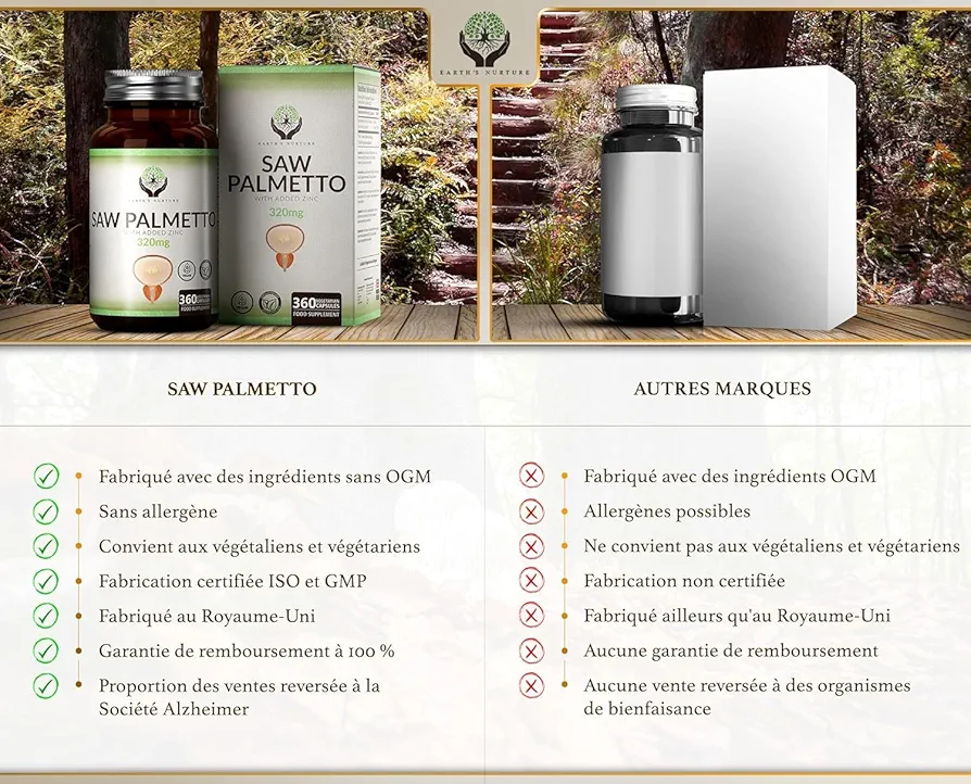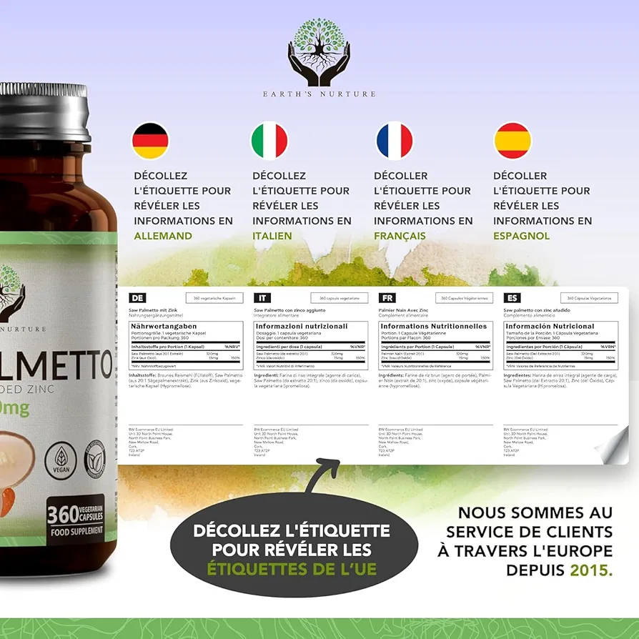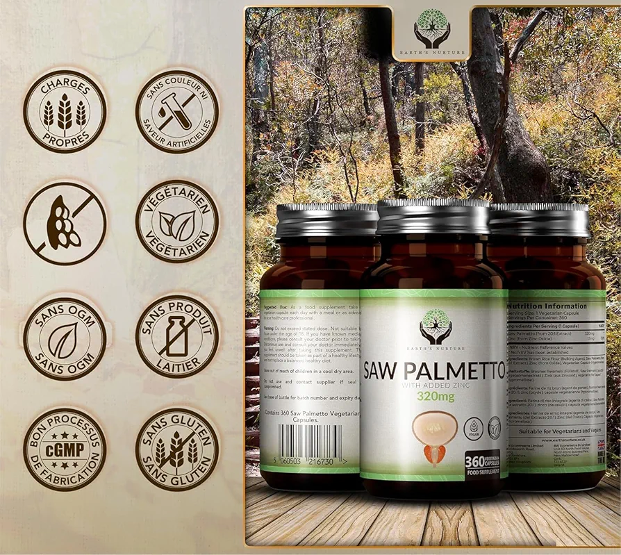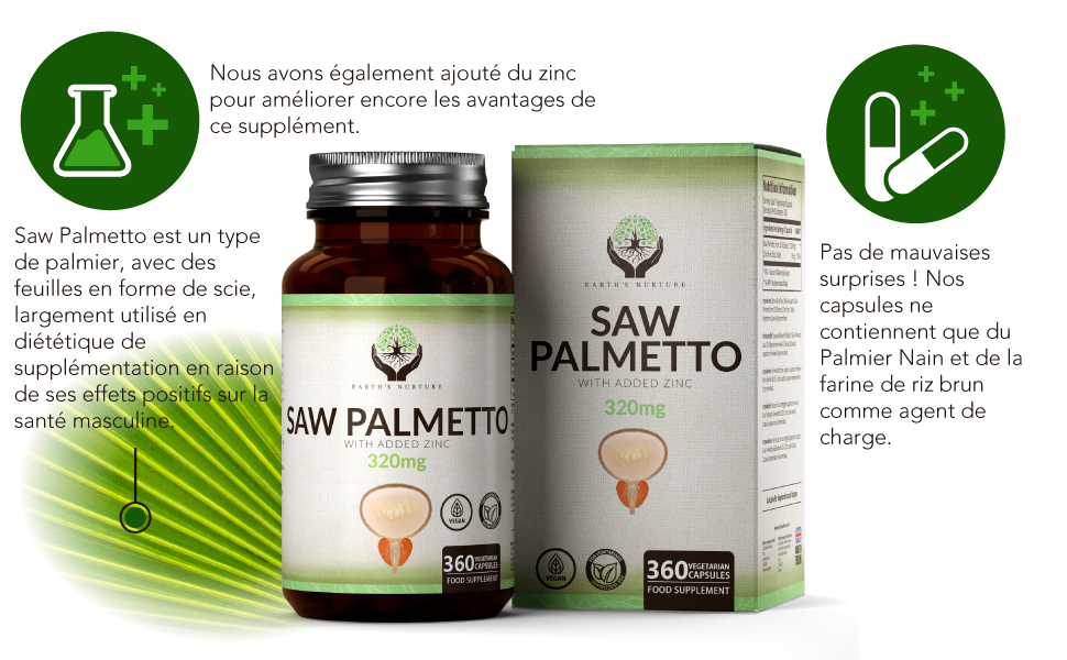 ✅️ EARTH NATURE SAW PALMETTO + ZINC 360 CAPSULES VEGAN 🌱
