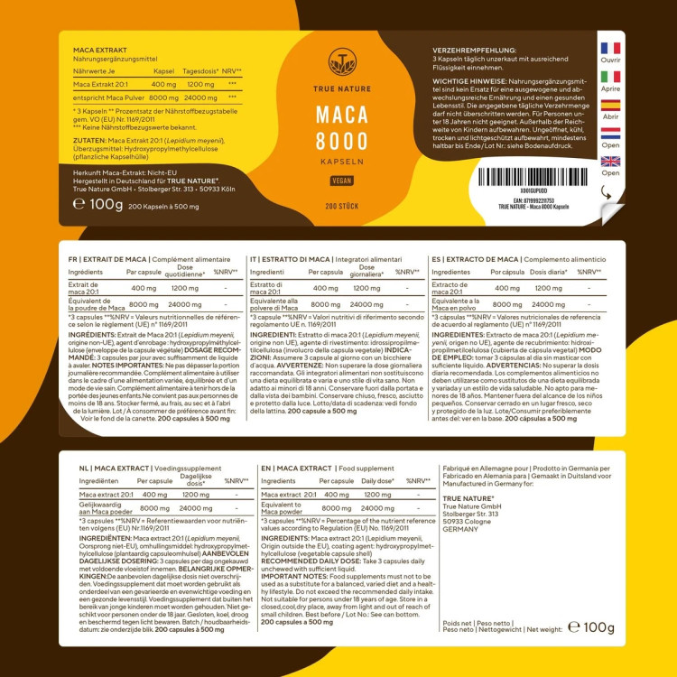 TRUE NATURE MACA 8000 (20:1) 🇩🇪 200 Capsules