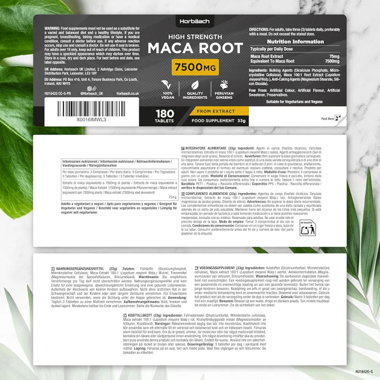 ماکا روت ۷۵۰۰میلیگرم وگان کمپانی هورباخ ۱۸۰ تبلت محصول کشور آلمان 🇩🇪 تضمین اصالت کالا ✅️