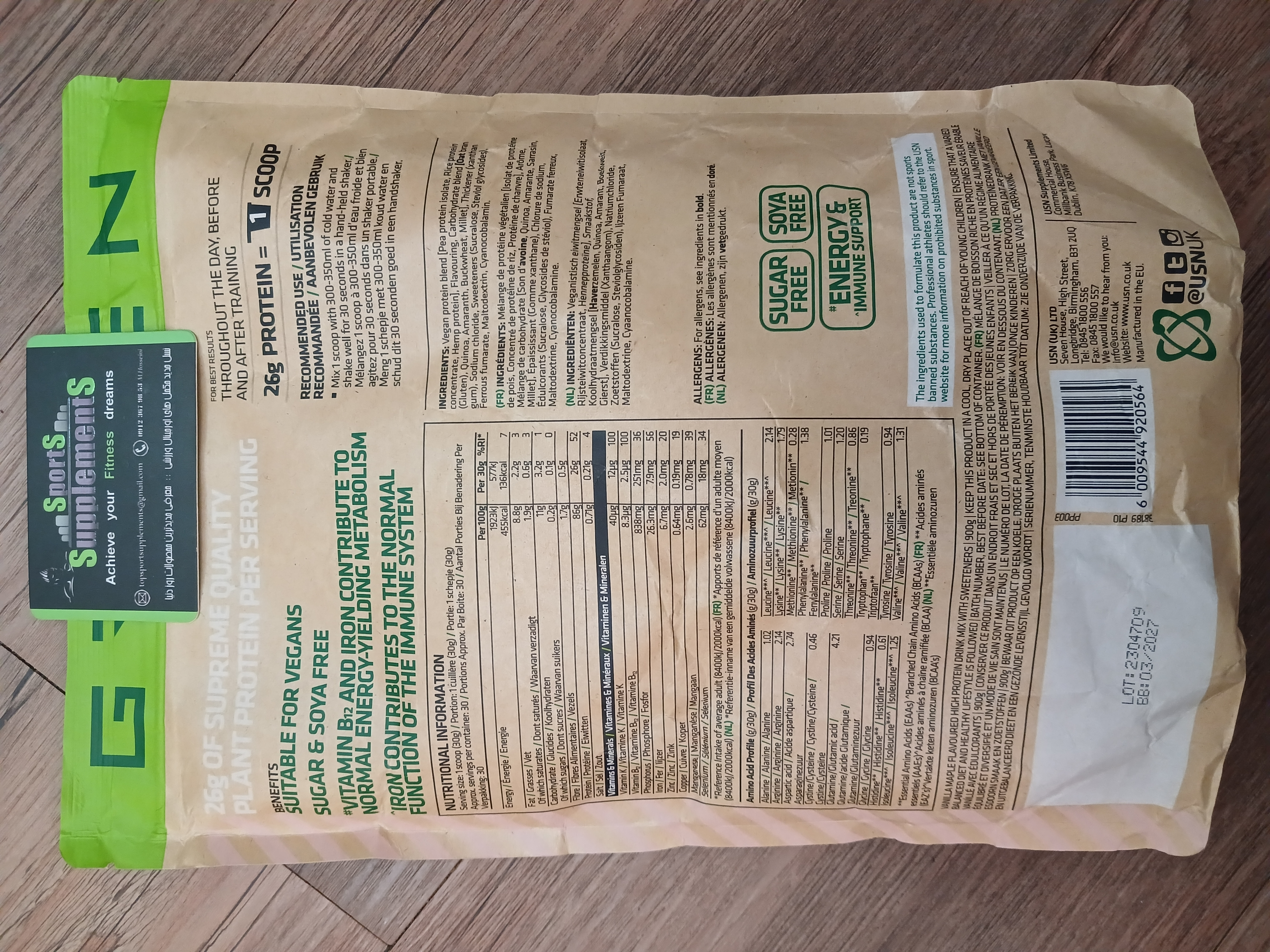 USN PLANT PROTEIN 100% VEGAN 🌱 900 GR ORIGINAL SUPPLEMENTS ✅️