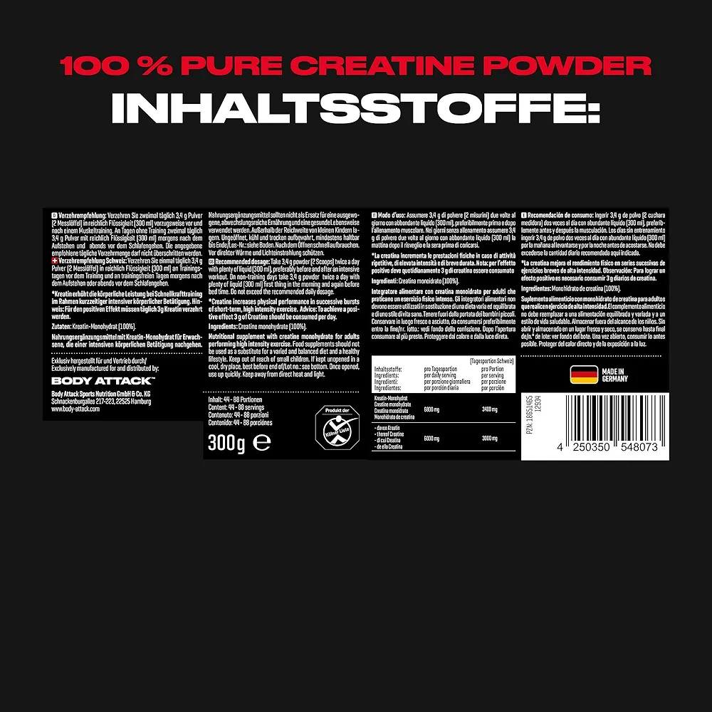 ✅️ BODY ATTACK CREATINE 300 GR VEGAN 🌱