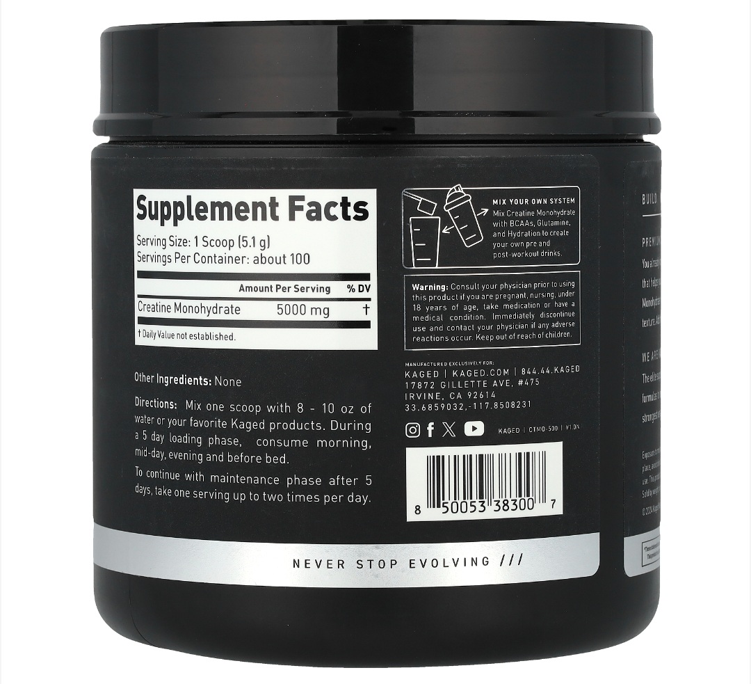 ✅️ Kaged muscle Creatine Monohydrate, Unflavoured, 1.12 lb (510 g)