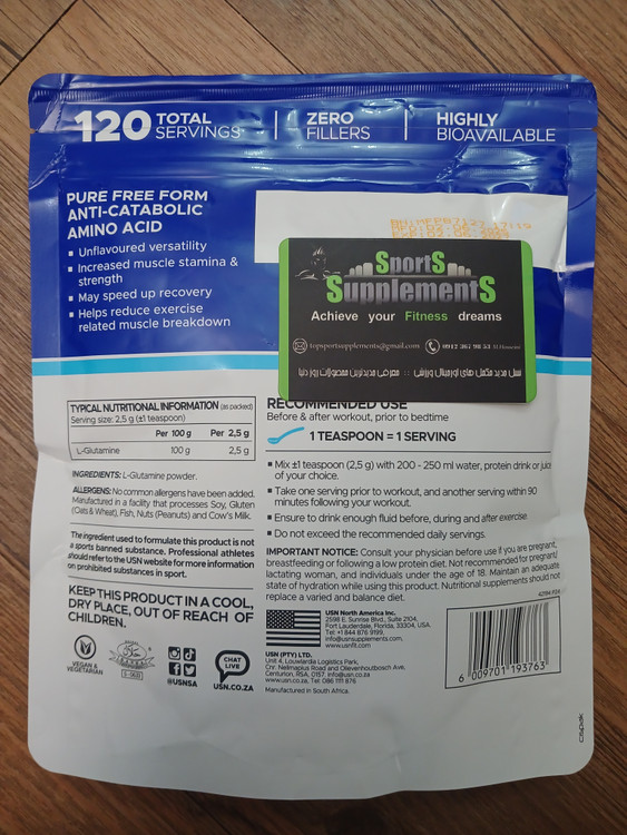گلوتامین پاکتی جدید یو اس ان ۳۰۰گرم تضمین اصالت کالا ✅️
