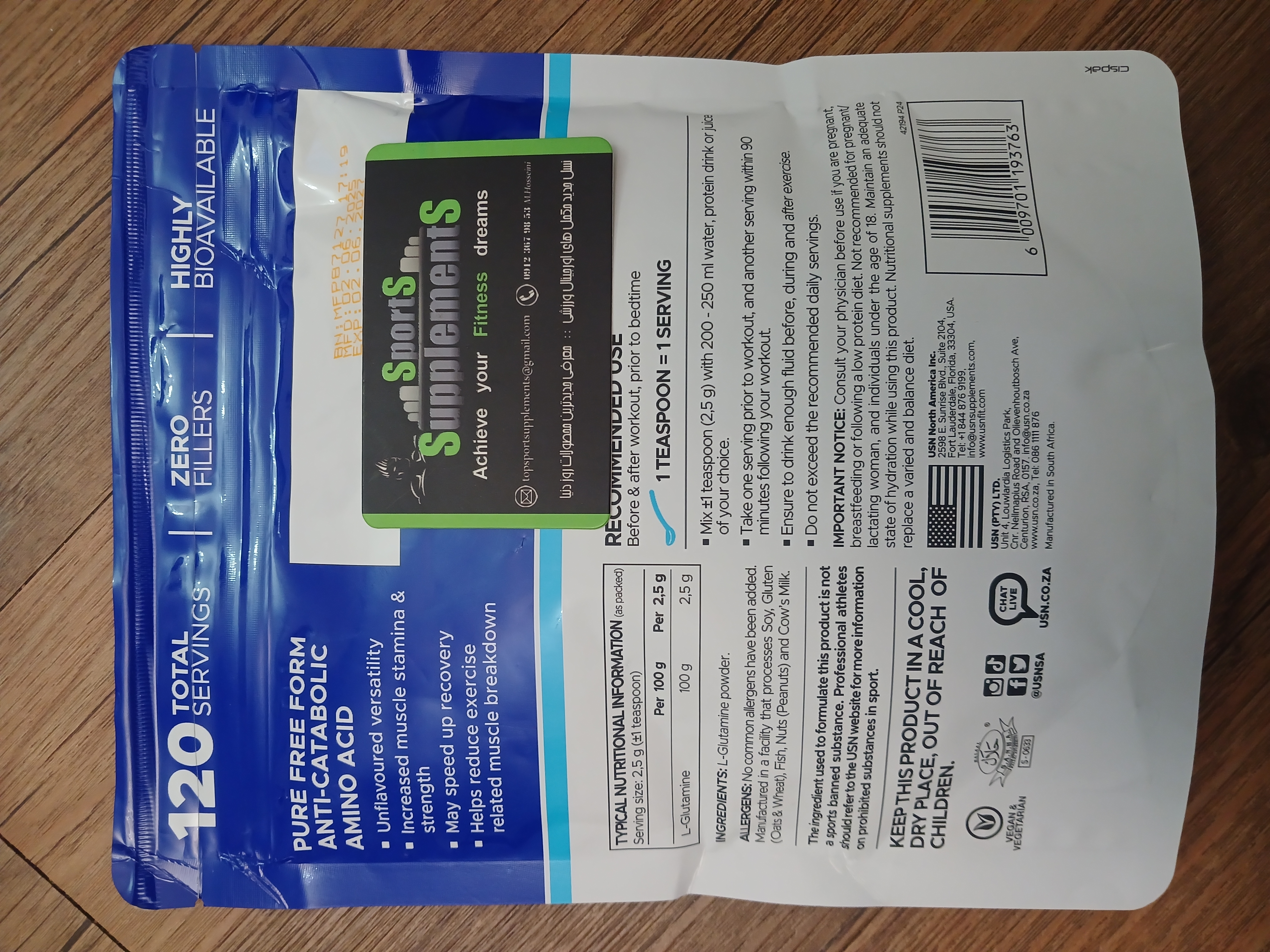 گلوتامین پاکتی جدید یو اس ان ۳۰۰گرم تضمین اصالت کالا ✅️
