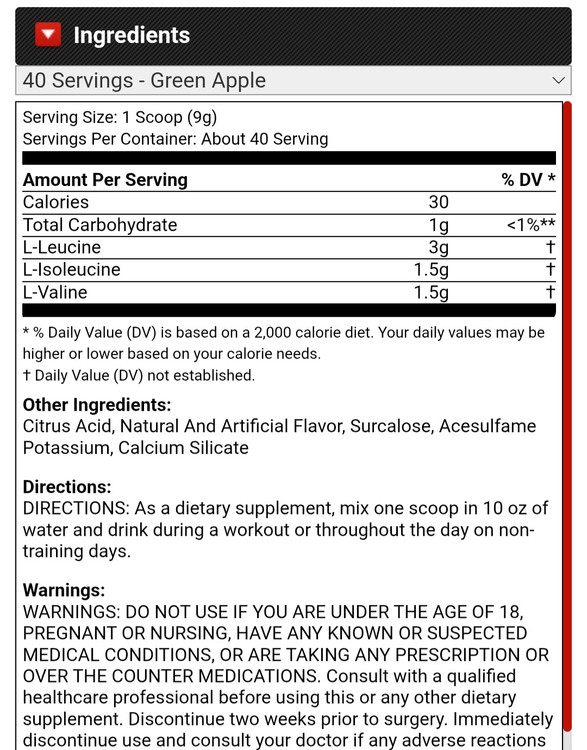 به عنوان یک مکمل غذایی، یک پیمانه (Scoop) را با حدود ۳۰۰ میلیلیتر (10 oz) آب مخلوط کرده و در حین تمرین یا در روزهای بدون تمرین، در طول روز میل کنید.